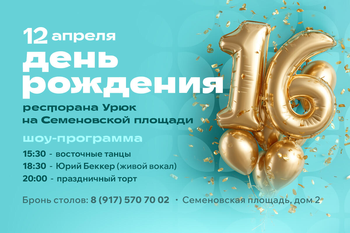 12 апреля ресторану "Урюк" на Семёновской исполняется 16 лет!