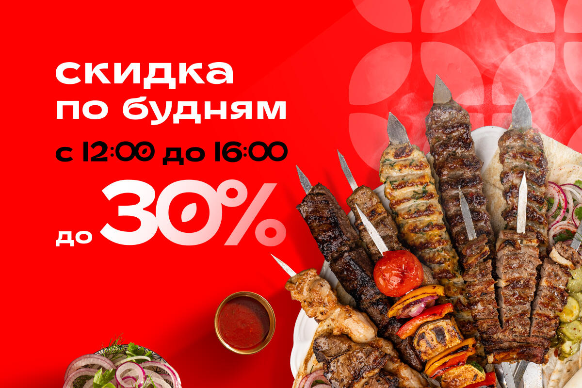 С 12:00 до 16:00 по будням наслаждайтесь любимыми блюдами из меню ресторанов "Урюк" со скидкой до -30%!