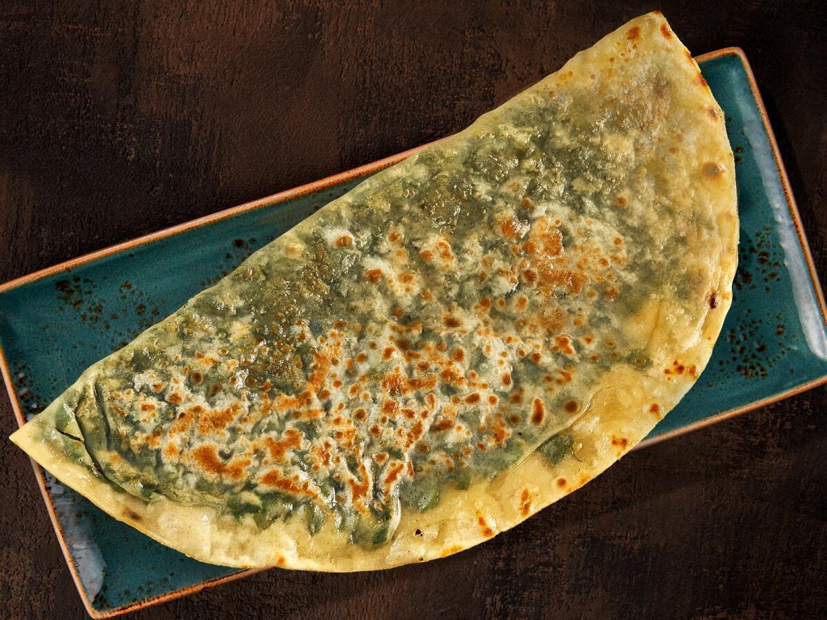 Тонкие пироги из пресного теста, с начинкой из ароматной, свежей зелени зелени. Подаются с соусом мацони.