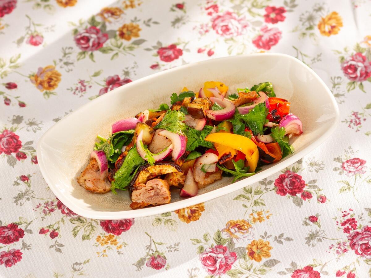 Салат из запеченных овощей с курицей