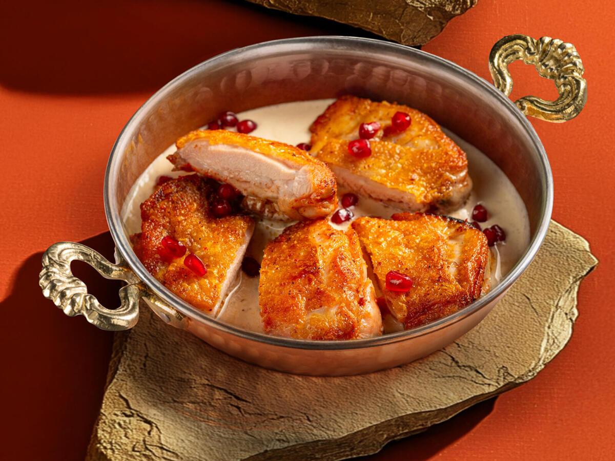 Сочные кусочки курицы, томлёные в ореховом соусе.