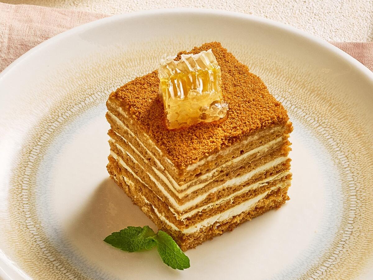 Нежный медовый бисквит и сливочно сметанный крем. Вес 100 г