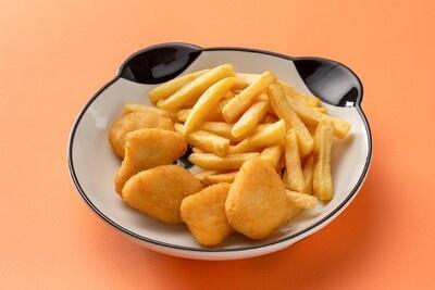 Куриные наггетсы – это сытное и вкусное блюдо, которое гармонично сочетает сочное куриное филе и золотистую панировку (5 шт.). Подаются с картофелем фри. Вес 105/100 г