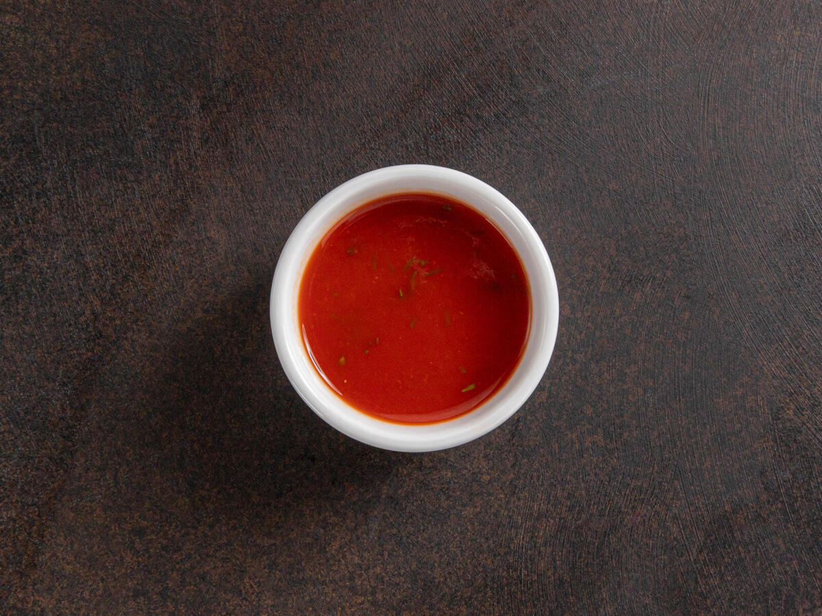 Традиционный узбекский соус, приготовленный на основе томатов с добавлением чеснока, ароматной кинзы и зелени.