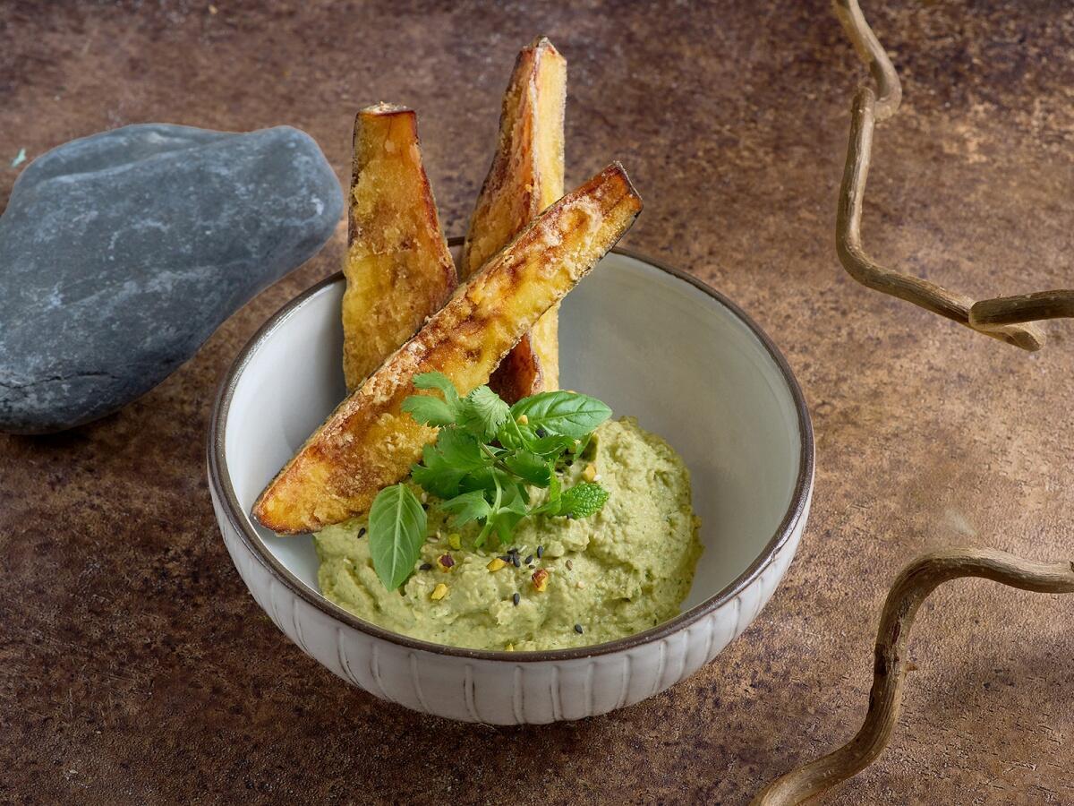 Нежная паста из запеченных на углях баклажанов, чесночного майонеза и ароматной тхины. Мы подаем его с обжаренными до хрустящей корочки баклажанами, зеленью, молотой фисташкой, кунжутом и оливковым маслом. Вес 260 г