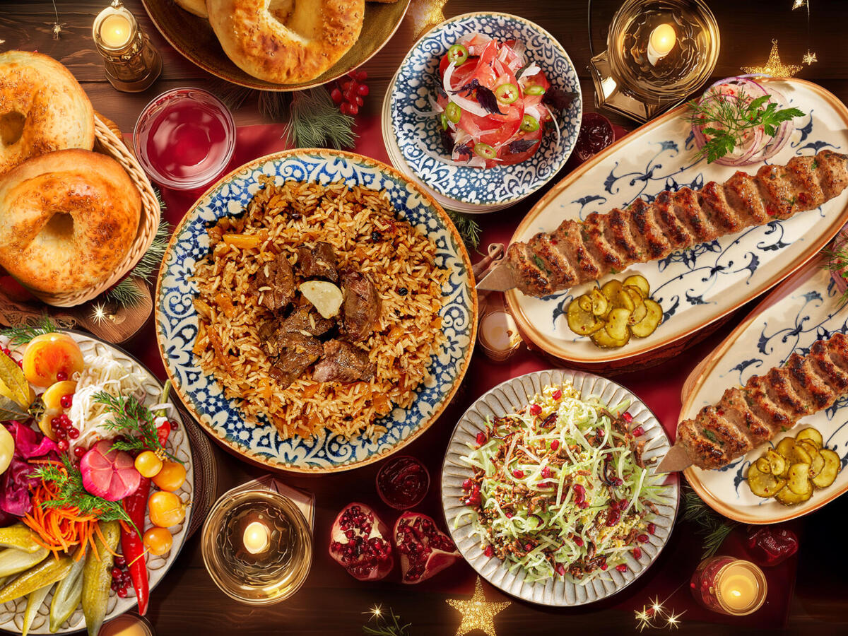 Кебаб из Баранины по-самаркандски -2 шт; Люля из Телятины XXL - 2 шт; Салат Аччик-чучук -3 шт; Салат Ташкент - 3 шт; Плов Чайханский - 3 шт; Тандырная лепешка -5 шт; Чимганский разносол - 1 шт; Морс клюквенный - 2 л; Вес 550/1020/1720/625 г / 2 л